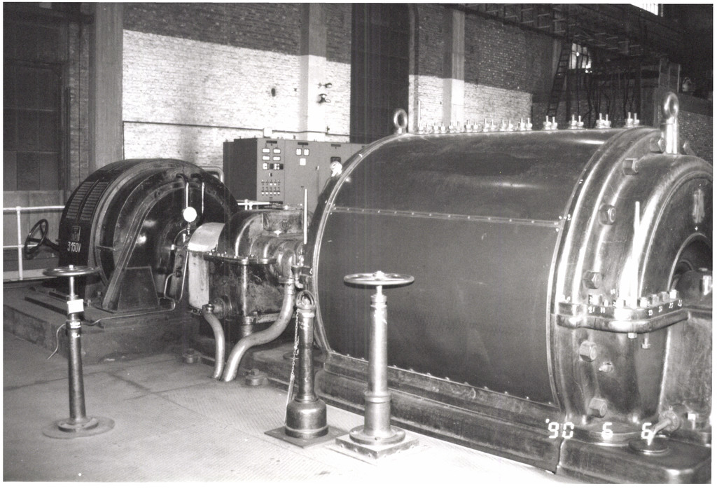 Opschrift achterzijde afbeelding: "compressorenzaal/compressor Soc. Als. de Cion Mécanique 1927/motor: ALSTHOM 1949"