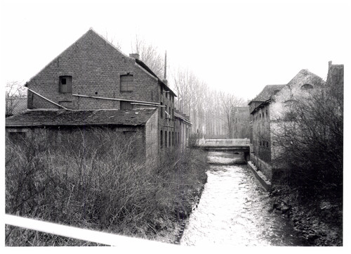 Opschrift achterzijde afbeelding: "Halen - Zwarte Duivelsstraat - voorm brouwerij (rechts)/Herk-de-Stad: voorm brouwerij + mouterij"
