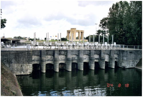 De afbeelding 'Sluizencomplex De Ganzepoot met oorlogsmonumenten' gemaakt door De Schepper, Jo wordt ter beschikking gesteld door Agentschap Onroerend Erfgoed (AOE) onder de volgende voorwaarden: Modellicentie voor gratis hergebruik, Naamsvermelding 4.0 Internationaal.