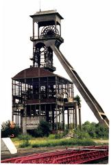 De afbeelding 'Schachtbokken van de mijn' wordt ter beschikking gesteld door Agentschap Onroerend Erfgoed (AOE) onder de volgende voorwaarden: Modellicentie voor gratis hergebruik, Naamsvermelding 4.0 Internationaal.