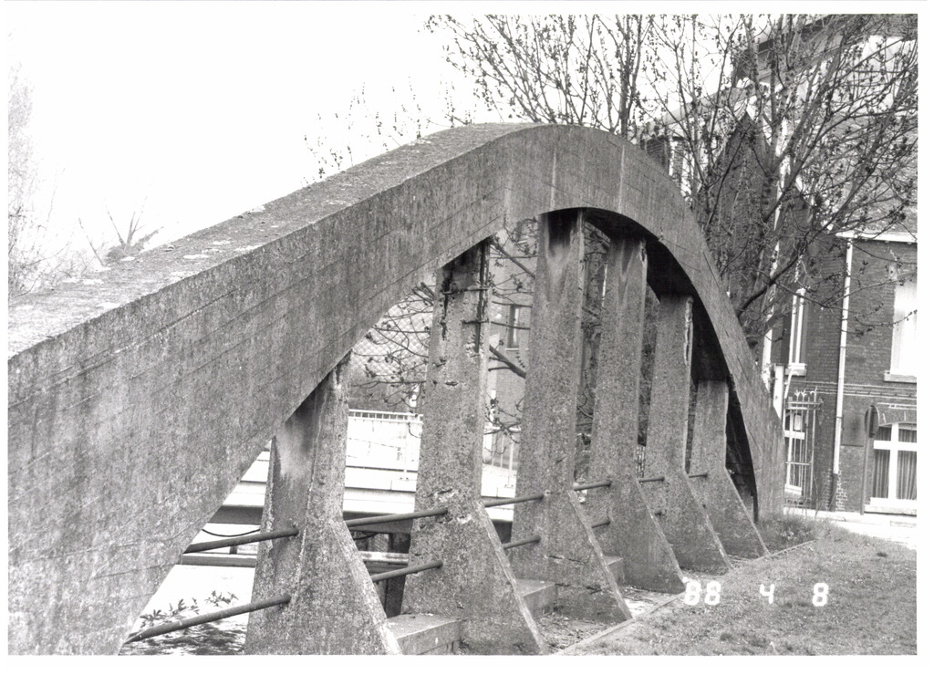 De afbeelding 'Oude trambrug over de Gete' wordt ter beschikking gesteld door Agentschap Onroerend Erfgoed (AOE) onder de volgende voorwaarden: Modellicentie voor gratis hergebruik, Naamsvermelding 4.0 Internationaal.