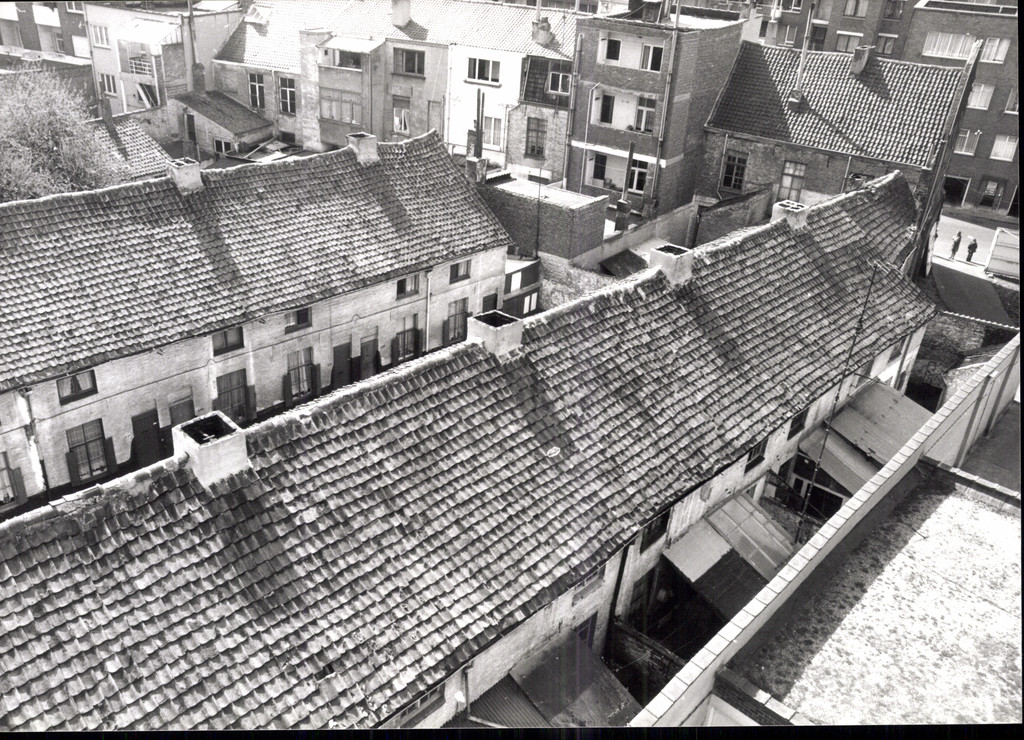Opschrift achterzijde afbeelding: "Sint-Lievenspoortstraat/nr 187-225 O-zijde"