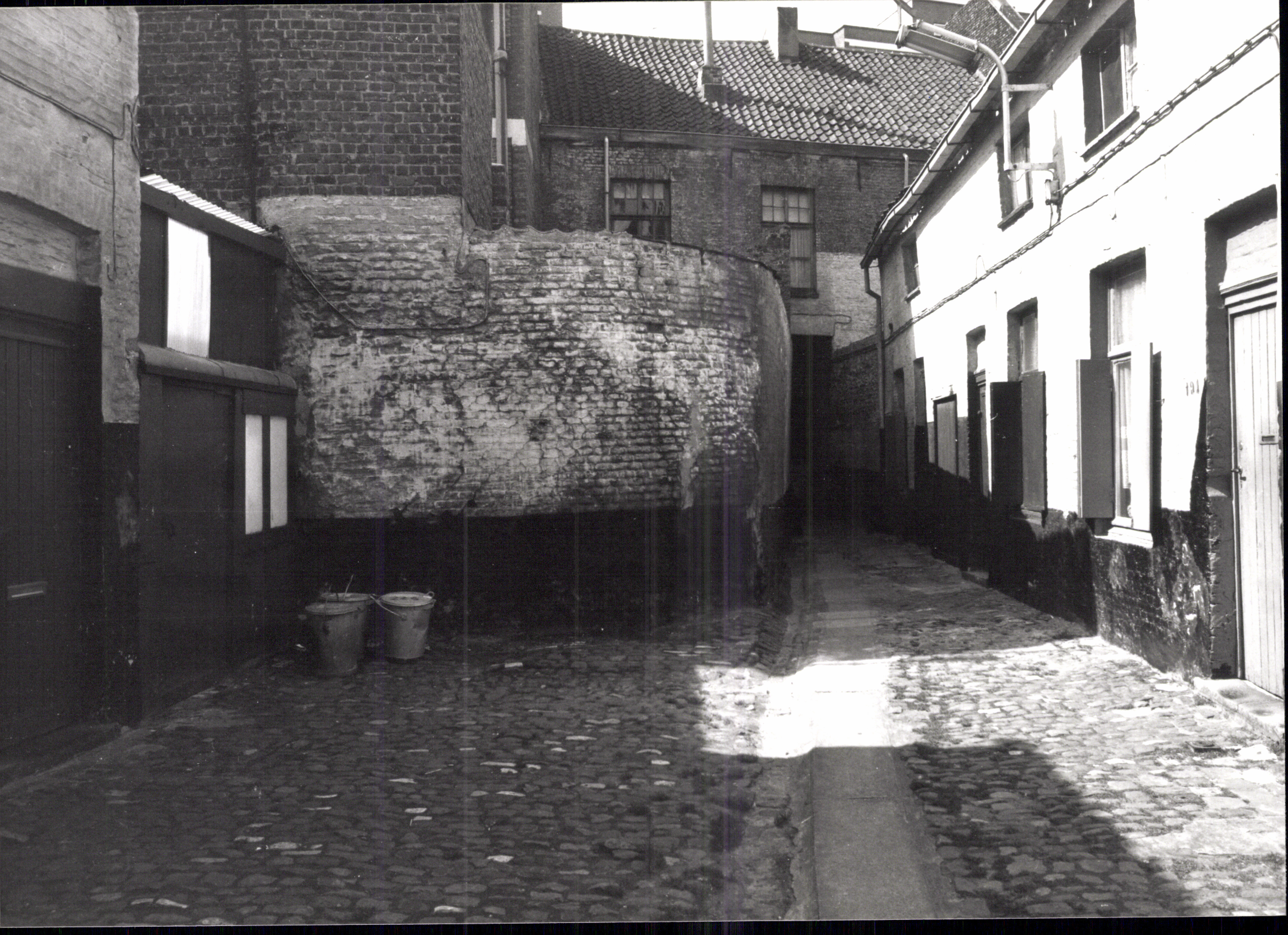 Opschrift achterzijde afbeelding: "Sint-Lievenspoortstraat/nr 187-225 O-zijde"