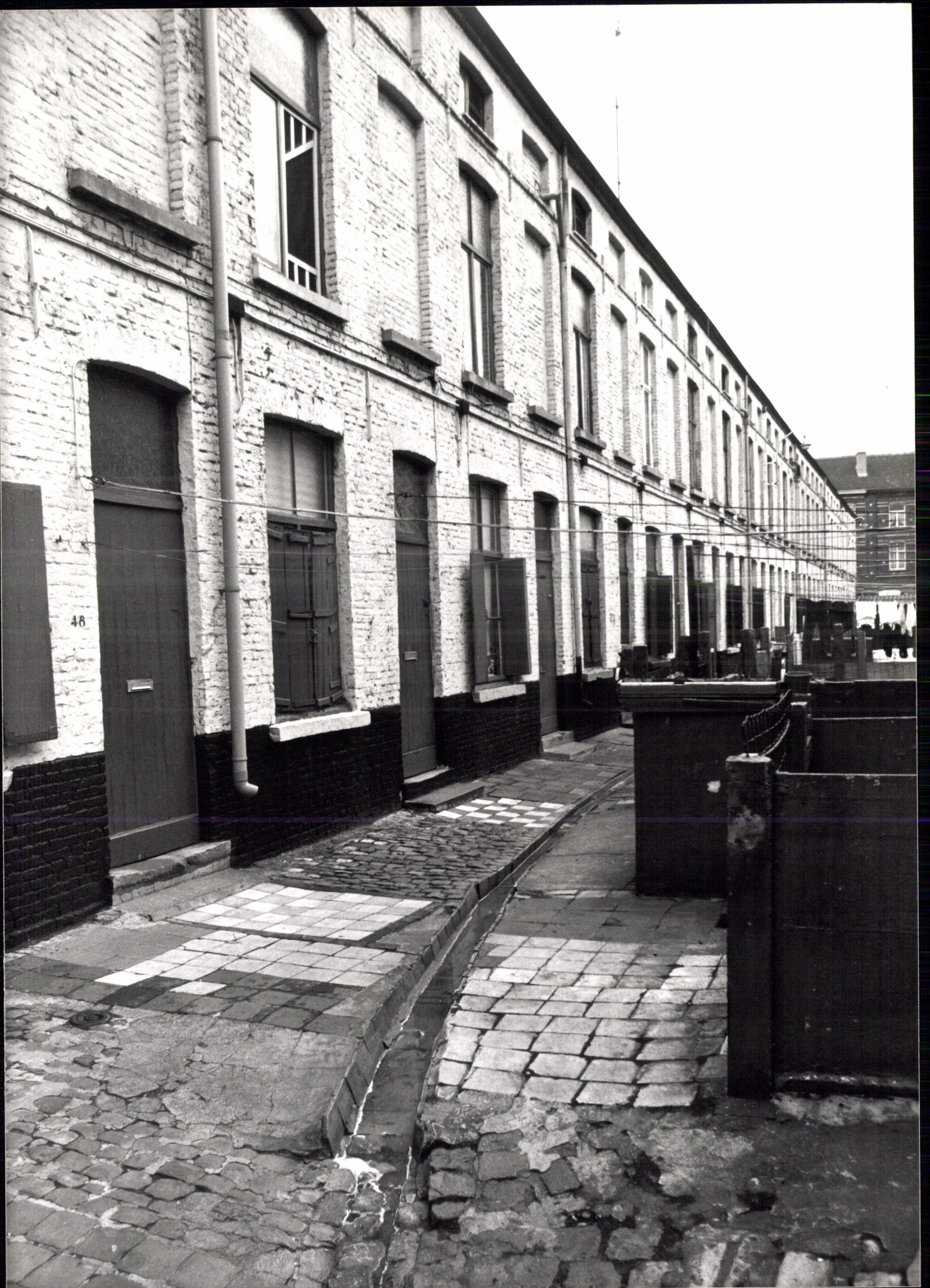 De afbeelding 'Huizen in eenzijdig bebouwd steegbeluik' wordt ter beschikking gesteld door Agentschap Onroerend Erfgoed (AOE) onder de volgende voorwaarden: Modellicentie voor gratis hergebruik, Naamsvermelding 4.0 Internationaal.