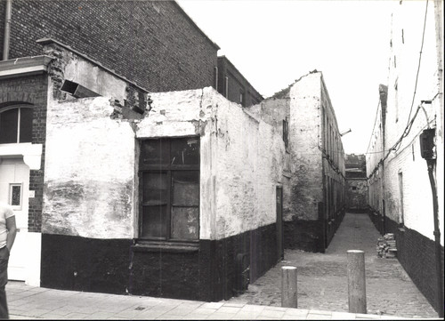 De afbeelding 'Steegbeluik met woningen' wordt ter beschikking gesteld door Agentschap Onroerend Erfgoed (AOE) onder de volgende voorwaarden: Modellicentie voor gratis hergebruik, Naamsvermelding 4.0 Internationaal.