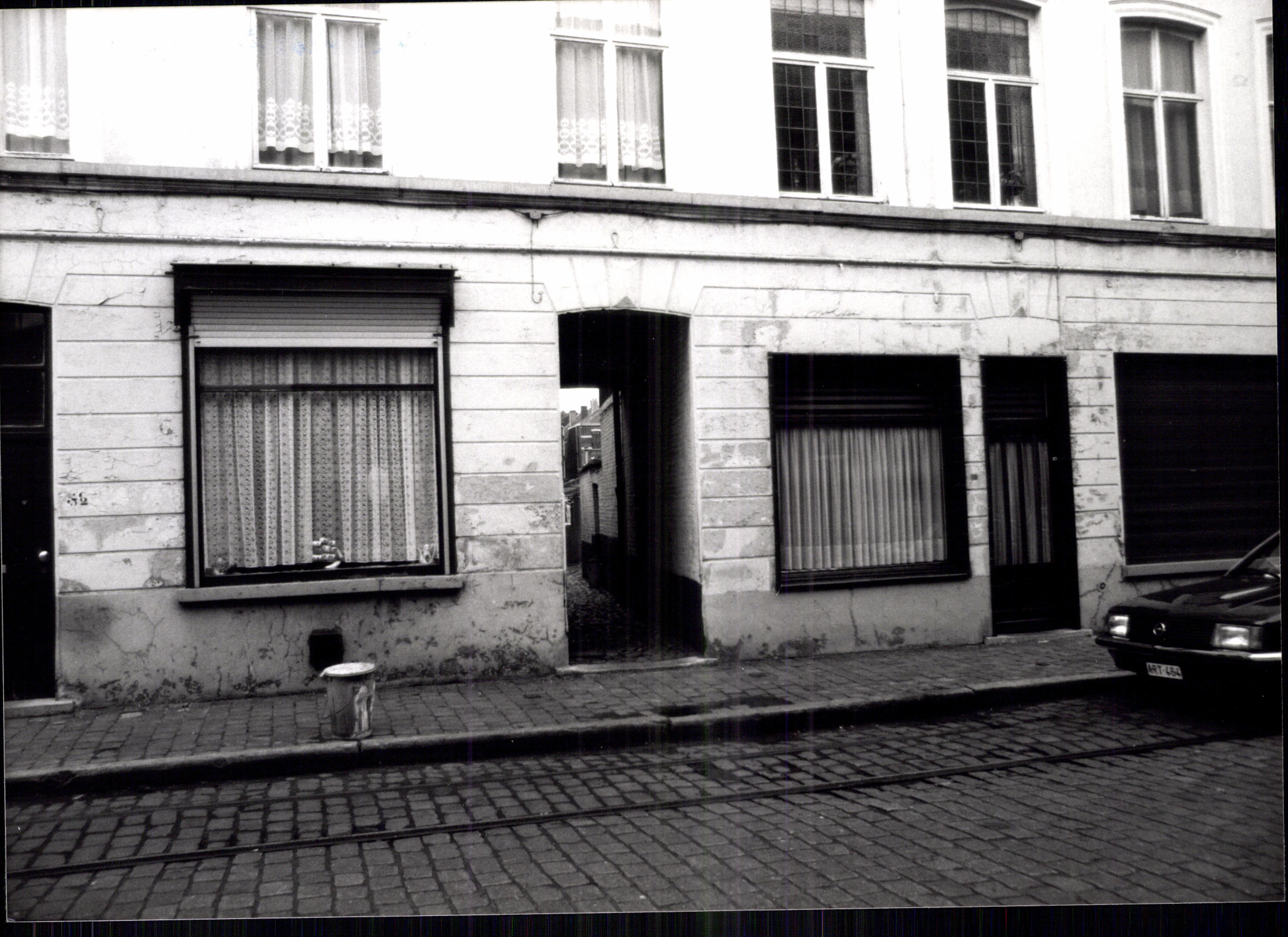 De afbeelding 'Huizen in eenzijdig bebouwd steegbeluik' wordt ter beschikking gesteld door Agentschap Onroerend Erfgoed (AOE) onder de volgende voorwaarden: Modellicentie voor gratis hergebruik, Naamsvermelding 4.0 Internationaal.
