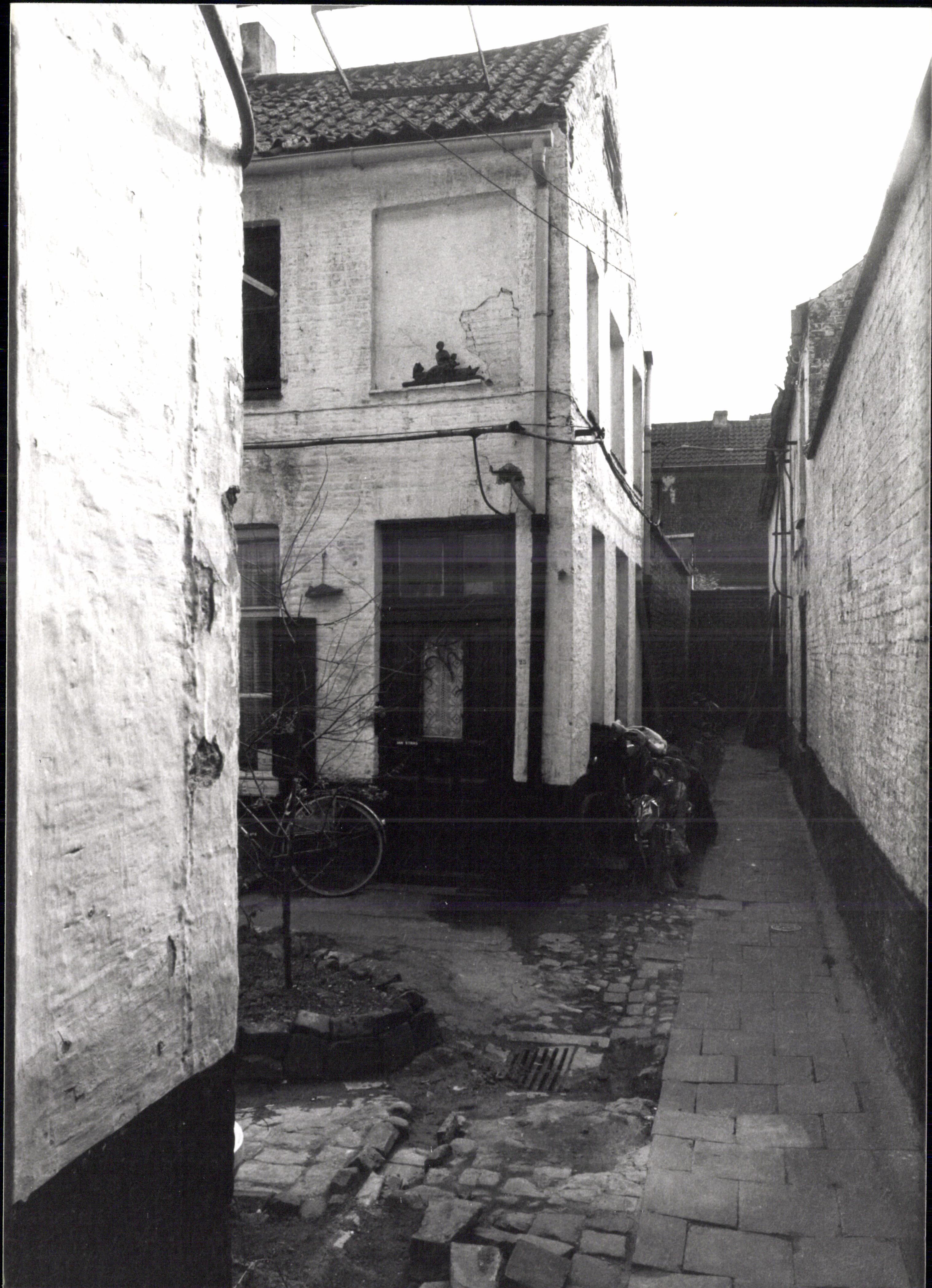 De afbeelding 'Woonhuizen in steegbeluik' wordt ter beschikking gesteld door Agentschap Onroerend Erfgoed (AOE) onder de volgende voorwaarden: Modellicentie voor gratis hergebruik, Naamsvermelding 4.0 Internationaal.