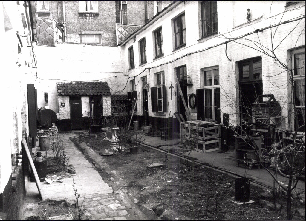 De afbeelding 'Woonhuizen in steegbeluik' wordt ter beschikking gesteld door Agentschap Onroerend Erfgoed (AOE) onder de volgende voorwaarden: Modellicentie voor gratis hergebruik, Naamsvermelding 4.0 Internationaal.