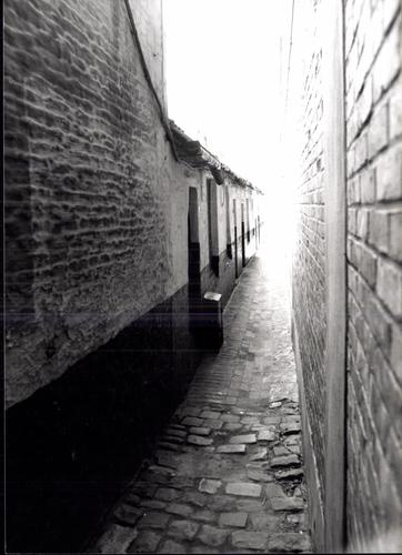De afbeelding 'Zes huisjes in steegbeluik' wordt ter beschikking gesteld door Agentschap Onroerend Erfgoed (AOE) onder de volgende voorwaarden: Modellicentie voor gratis hergebruik, Naamsvermelding 4.0 Internationaal.