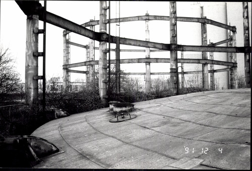 De afbeelding 'Gashouders' gemaakt door De Schepper, Jo wordt ter beschikking gesteld door Agentschap Onroerend Erfgoed (AOE) onder de volgende voorwaarden: Modellicentie voor gratis hergebruik, Naamsvermelding 4.0 Internationaal.