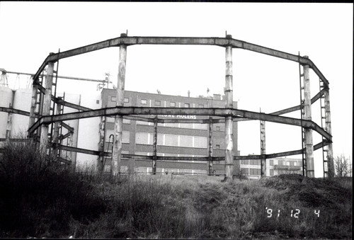 De afbeelding 'Gashouders' gemaakt door De Schepper, Jo wordt ter beschikking gesteld door Agentschap Onroerend Erfgoed (AOE) onder de volgende voorwaarden: Modellicentie voor gratis hergebruik, Naamsvermelding 4.0 Internationaal.