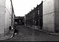 De afbeelding 'Arbeiderswoningen in steegbeluik' wordt ter beschikking gesteld door Agentschap Onroerend Erfgoed (AOE) onder de volgende voorwaarden: Modellicentie voor gratis hergebruik, Naamsvermelding 4.0 Internationaal.