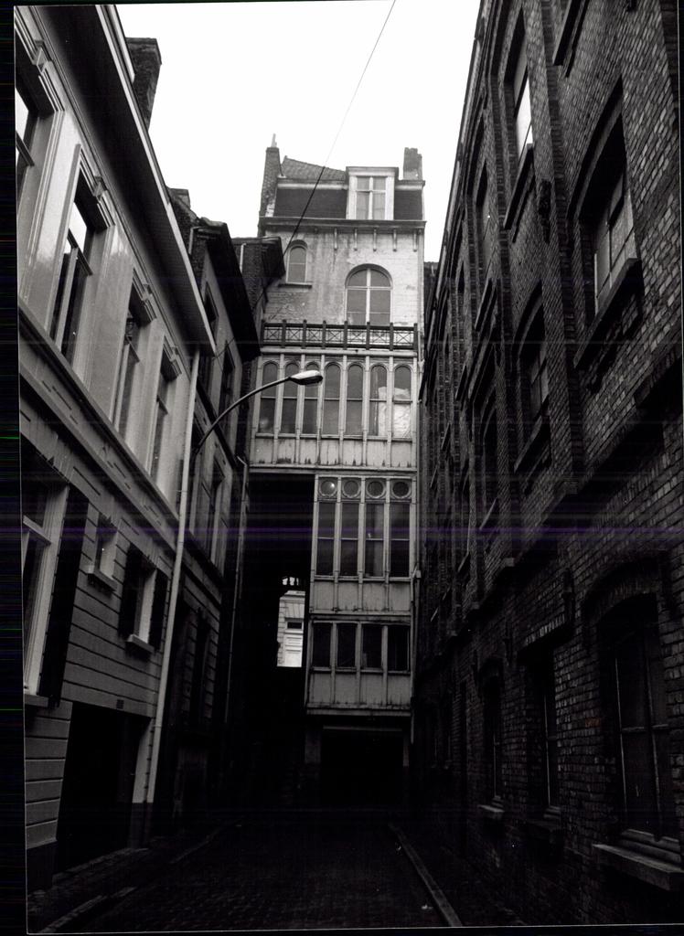Foto genomen rond 1980; Korianderstraat, Lammerstraat, Platteberg, Savaanstraat, Sint-Pietersnieuwstraat, Walpoortstraat, Grote Huidevettershoek