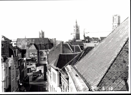 De afbeelding 'Zicht op de Walpoortstraat' wordt ter beschikking gesteld door Agentschap Onroerend Erfgoed (AOE) onder de volgende voorwaarden: Modellicentie voor gratis hergebruik, Naamsvermelding 4.0 Internationaal.
