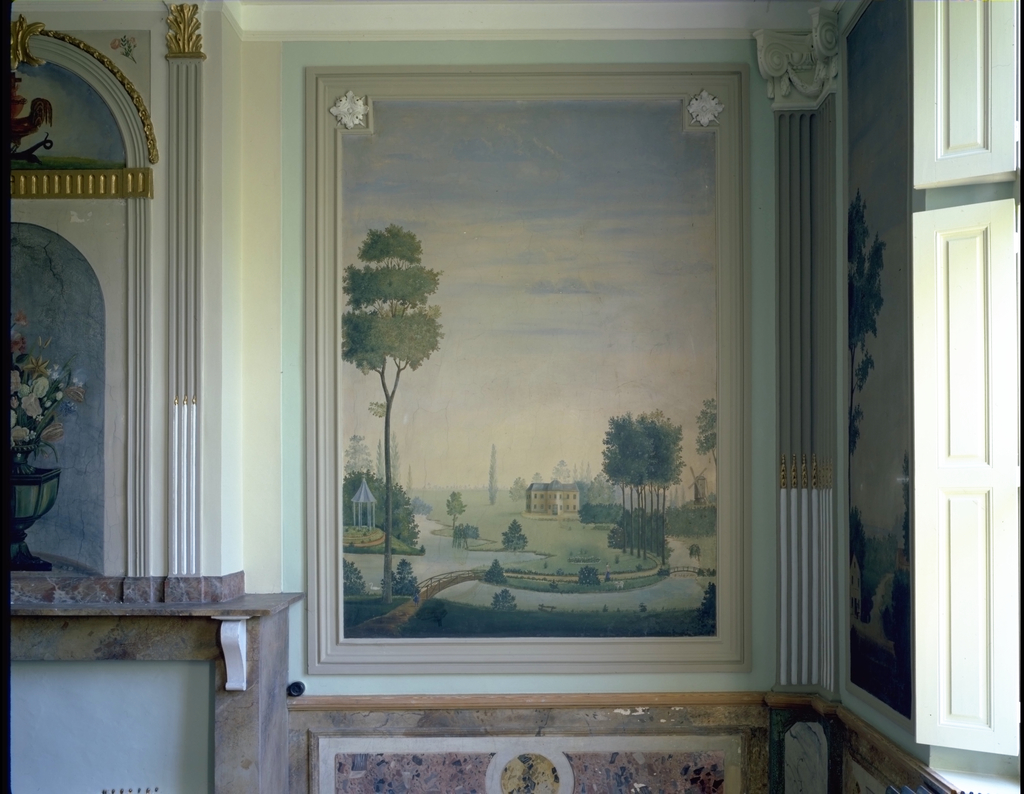 De afbeelding 'Salon pastorie: schildering' gemaakt door Charlier, Georges wordt ter beschikking gesteld door Agentschap Onroerend Erfgoed (AOE) onder de volgende voorwaarden: Modellicentie voor gratis hergebruik, Naamsvermelding 4.0 Internationaal.