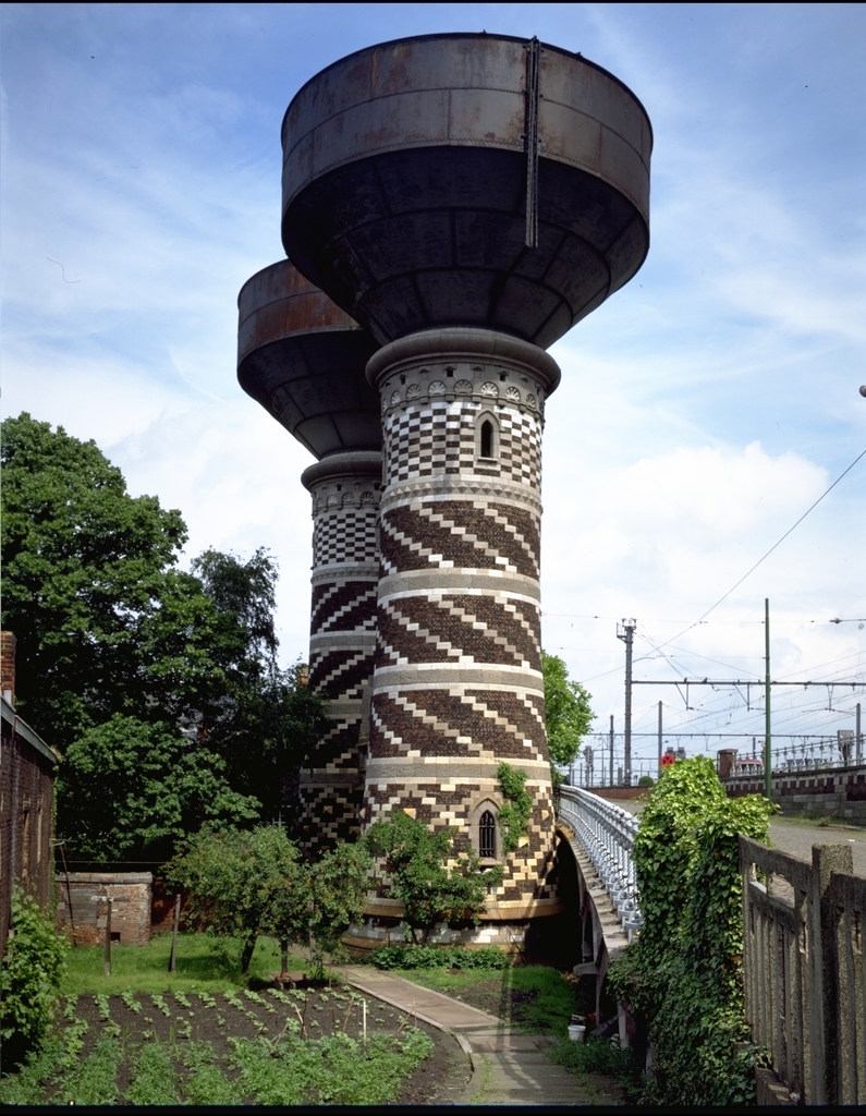 Alle rechten op de afbeelding 'Het Ooststation - Draakplaats ; onbekende ijzeren intzekuip op gesloten voet ; sterke overkaging van het kuipgedeelte Twee identieke watertorens van 1898 gelegen bij het station Antwerpen-Oost en deel uitmakend enerzijds van de Antwerpse ringspoorweg ; anderzijds van een autonoom en gesloten watervoorzieningssysteem van de spoorwegmaatschappij ; waartoe ook de watertorens van het station Schijnpoort behoren (zie Halenstraat). ' gemaakt door Pauwels, Oswald zijn voorbehouden aan Pauwels, Oswald.