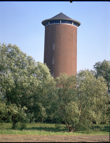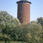 Alle rechten op de afbeelding 'Iets achterin gelegen ; bakstenen watertoren onder kegelvormige spits ; van 1963 (op toegangshek jaartal 1964). Zuilvormige watertoren zonder onderscheid tussen kuipgedeelte en voet. ' gemaakt door Pauwels, Oswald zijn voorbehouden aan Pauwels, Oswald.