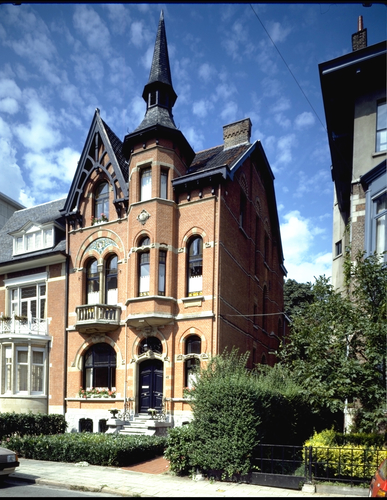 Alle rechten op de afbeelding 'Dubbelhuis: aanzicht gevel 45° - Art-Nouveau elementen' gemaakt door Pauwels, Oswald zijn voorbehouden aan Pauwels, Oswald.