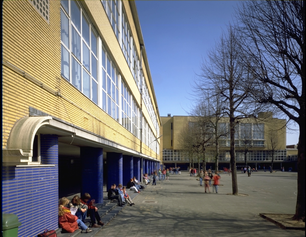 Speelplaats - algemeen zicht - n.o.v. arch. E. Van Steenbergen Publicatie(s): M&L 12/3, p. 24: Het Koninklijk Atheneum, Deurne Label(s): onderwijsgebouwen