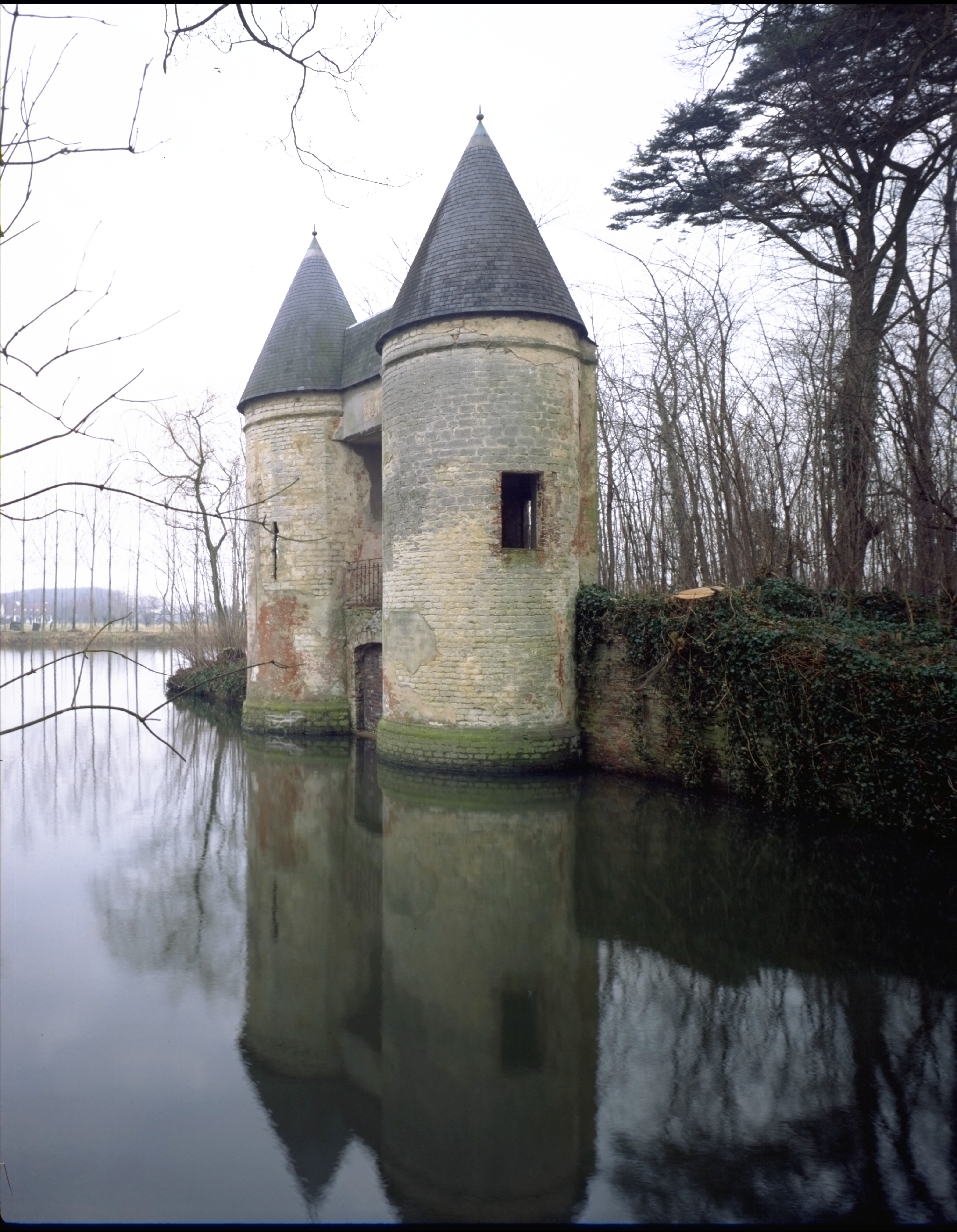Alle rechten op de afbeelding 'vml. Bisschoppelijk kasteel van Rooselaer: toegangstorens vanuit westen - alg.zicht' gemaakt door Pauwels, Oswald zijn voorbehouden aan Pauwels, Oswald.