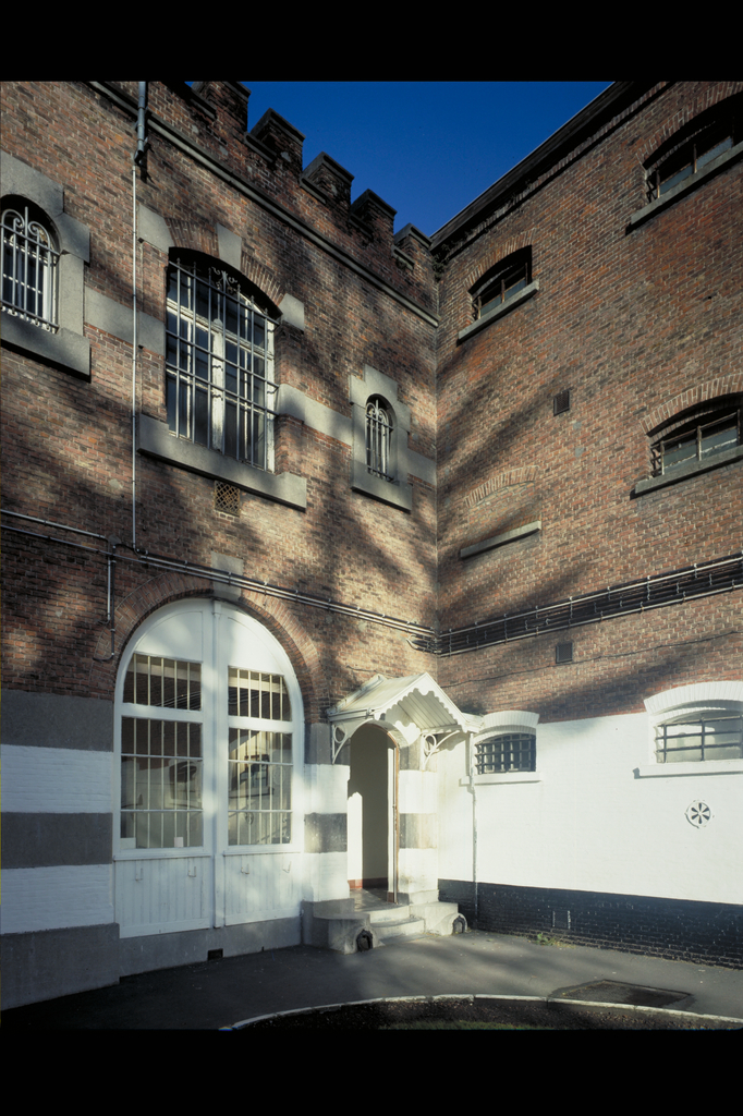 Alle rechten op de afbeelding 'Het Pandreitje ; historisch gevangenisgebouw: exterieur ; binnenhof: gevangenispoort en wachthok - alg.zicht (45°) - gesloopt 1992' gemaakt door Pauwels, Oswald zijn voorbehouden aan Pauwels, Oswald.