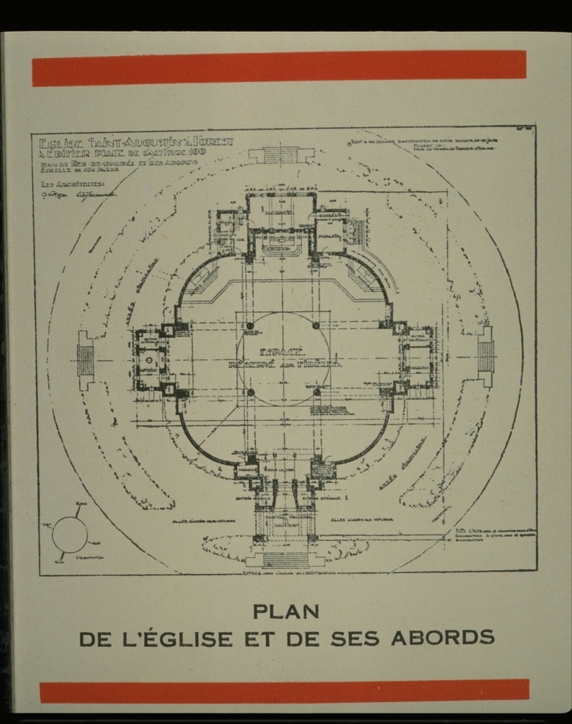 De St.Augustinuskerk: grondplan van de kerk en aanhorigheden n.o.v. Guianotte en Watteyne (8/1932)