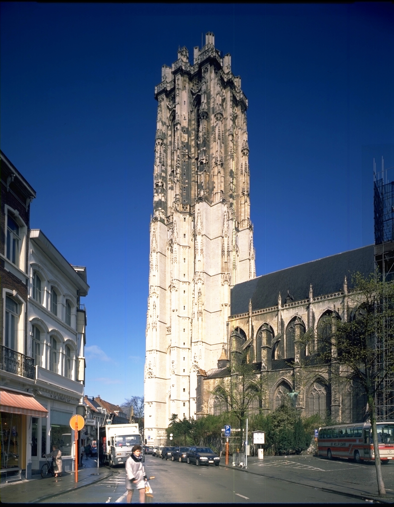 De St.Romboutskathedraal: exterieur ; toren en 1/2 schip - alg.zicht vanaf zuiden (R.45°)