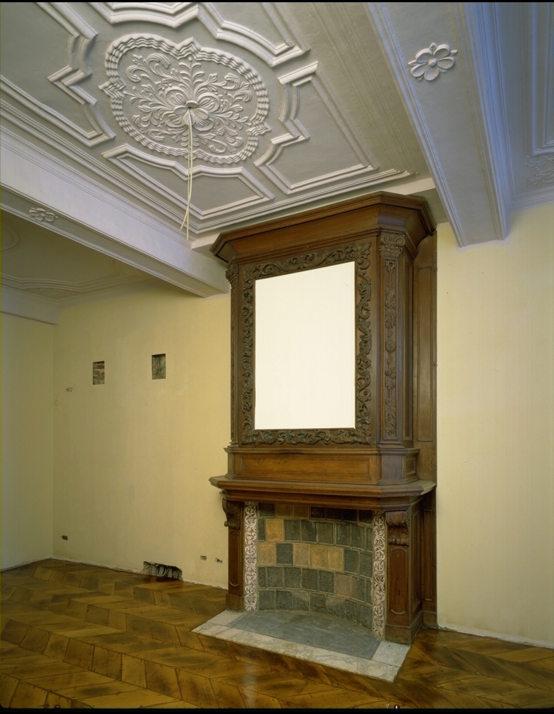 Publicatie(s): M&L 12/4 p. 34: Eerste verdieping - vooraan rechts: laatbarokke schouw en plafond. Toestand na de restauratie. Het huis "De Leliën": interieur, eerste verdieping voor rechts - late barok - schouw en stucwerk na restauratie - algemeen zicht (R.45°) Label(s): woningen, interieurs, schouwen, stucwerk