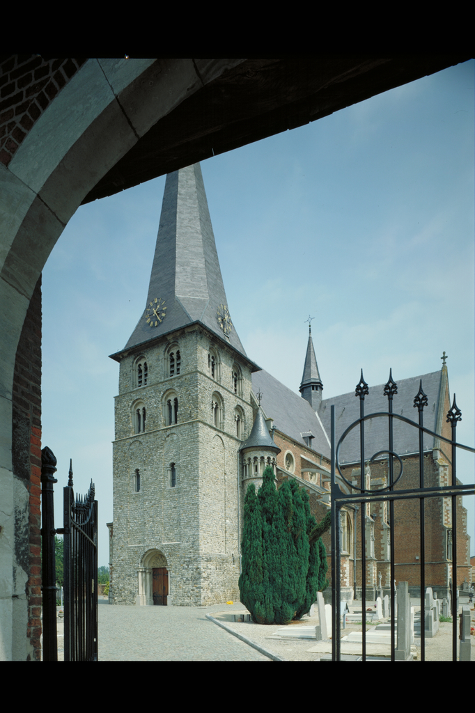 Alle rechten op de afbeelding 'De St.Genovevakerk: west & zuidgevel - aanzicht van onder toegangspoort tot kerkhof' gemaakt door Pauwels, Oswald zijn voorbehouden aan Pauwels, Oswald.