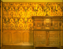 De Norbertijnerabdij: interieur, salon met goudleder - detail Label(s): abdijen, interieurs, goudleder