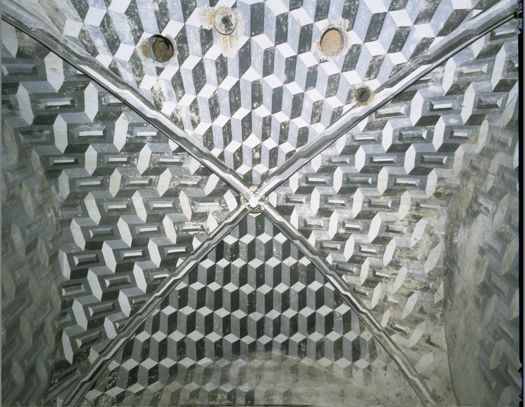 Het Sint-Janshospitaal: Broederklooster - archiefkamertje - gewelfschilderingen - detail: gewelfkappen (zicht 2) Label(s): kloosters, interieurs