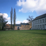 De Abdij van Herkenrode: binnenhof - alg.zicht met abdissenhuis en populieren
