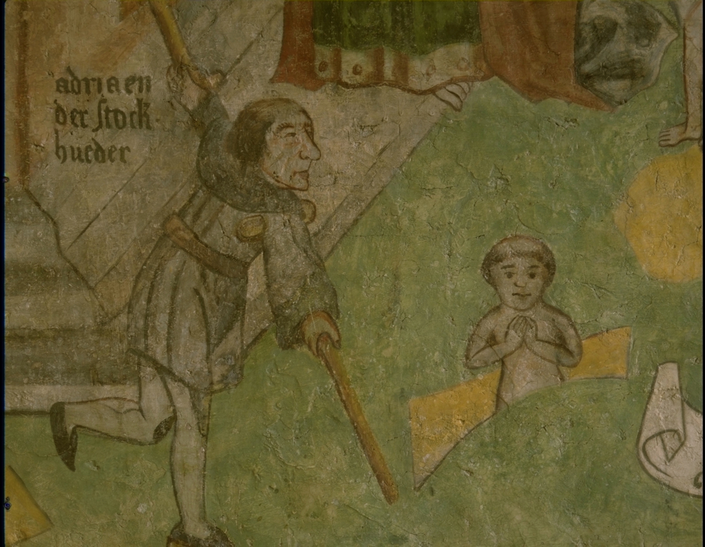 Alle rechten op de afbeelding 'De St.Genovevakerk: interieur ; muurschildering - detail: handtekening kunstenaar Adriaen der Stockhueder' gemaakt door Pauwels, Oswald zijn voorbehouden aan Pauwels, Oswald.