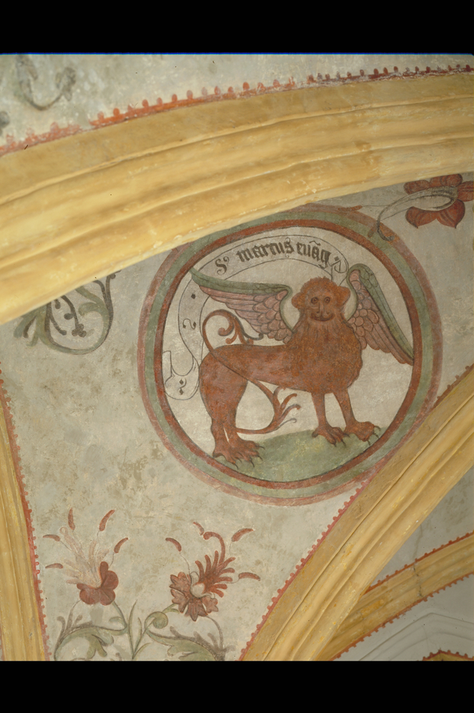 Alle rechten op de afbeelding 'De St.Genovevakerk: interieur ; gewelfschildering - detail: voorstelling leeuw ; symbool Marcus de Evangelist' gemaakt door Pauwels, Oswald zijn voorbehouden aan Pauwels, Oswald.