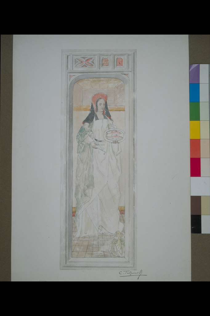 Alle rechten op de afbeelding 'De Begijnhofkerk St.Agnes: interieur ; muurschilderingen - copie C.Tulpinck - aquarel: St.Elisabeth van Hongarije' gemaakt door Pauwels, Oswald zijn voorbehouden aan Pauwels, Oswald.