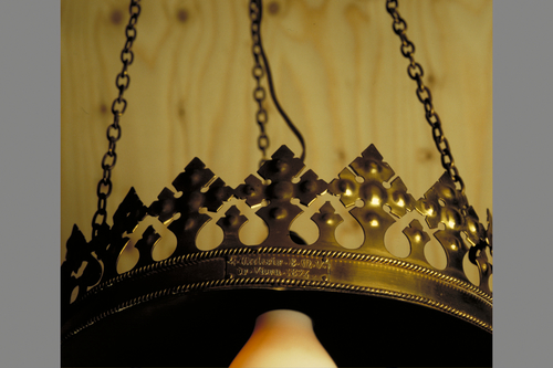 Publicatie(s): M&L 9/5, p. 53: detail: datering op de middenkroon van de koperen hangarmatuur Label(s): kerken, interieurs