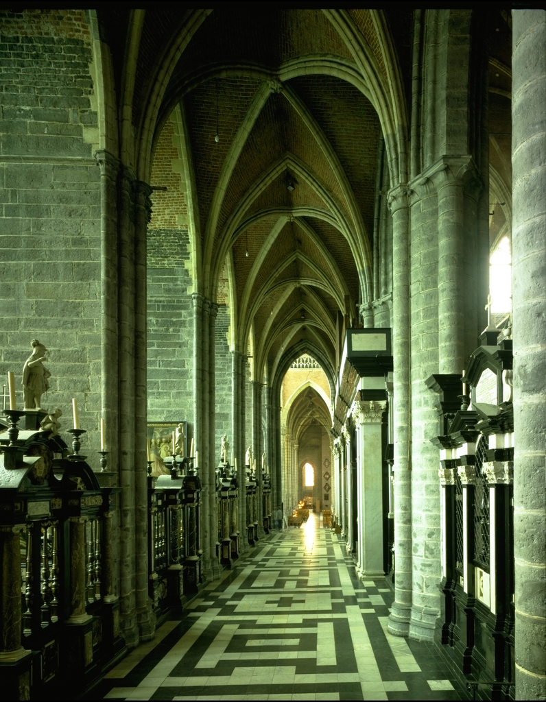 Interieur, zuidelijke kooromgang, algemeen zicht naar het westen Label(s): kathedralen, interieurs