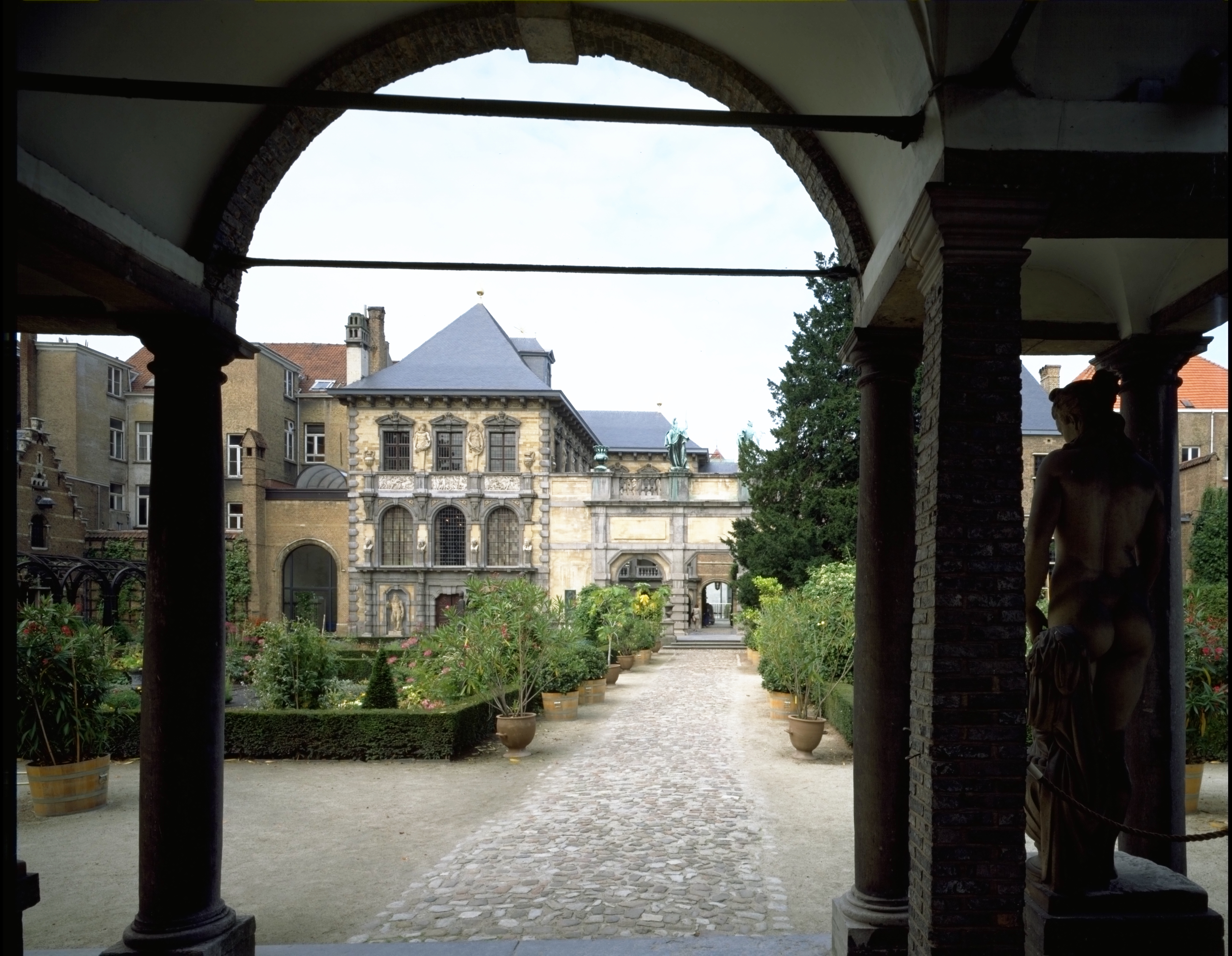 Alle rechten op de afbeelding 'Het Rubenshuis: de Rubenstuin - Orangerie potten replica's van Rubens liefdesallegoerie van Ven P. of De wandeling in de tuin' gemaakt door Pauwels, Oswald zijn voorbehouden aan Pauwels, Oswald.