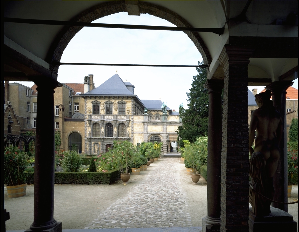 Het Rubenshuis: de Rubenstuin - Orangerie potten replica's van Rubens liefdesallegoerie van Ven P. of De wandeling in de tuin