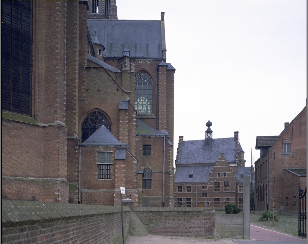 Alle rechten op de afbeelding 'Achterzijde kerk en stadhuis: alg.zicht' gemaakt door Pauwels, Oswald zijn voorbehouden aan Pauwels, Oswald.