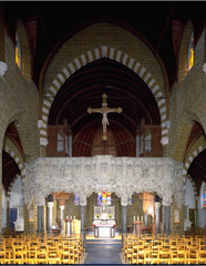 Interieur met koordoksaal Publicatie(s): Brochure Langs Vlaamse Wegen Tessenderlo p. 5 Label(s): kerken, interieurs, overig beeldhouwwerk