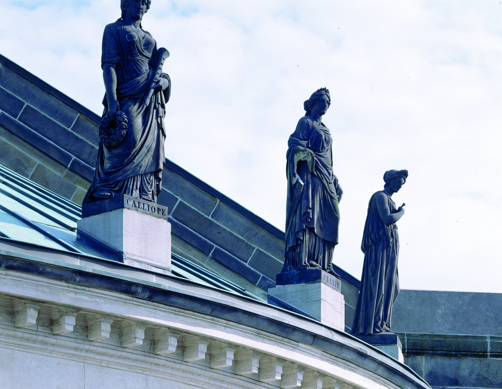 Alle rechten op de afbeelding 'De Bourla-Schouwburg: muzen Calliope ; Uronie' gemaakt door Pauwels, Oswald zijn voorbehouden aan Pauwels, Oswald.