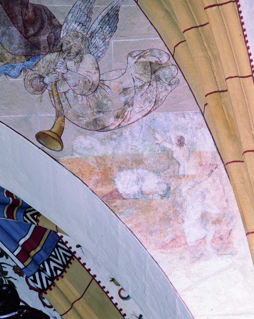 Alle rechten op de afbeelding 'De St.Lambertuskerk: deel van de muurschildering van het Laatste Oordeel' gemaakt door Pauwels, Oswald zijn voorbehouden aan Pauwels, Oswald.