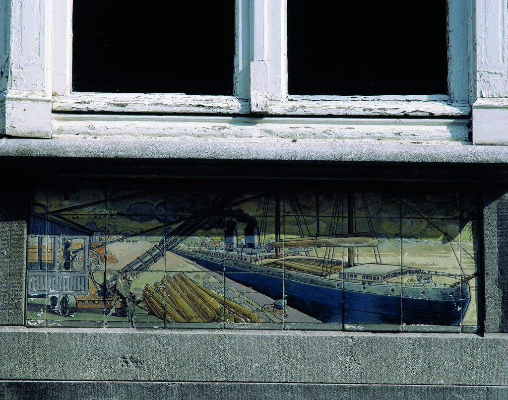 Alle rechten op de afbeelding 'Tegeltableau: boomstammenvervoer per schip' gemaakt door Pauwels, Oswald zijn voorbehouden aan Pauwels, Oswald.