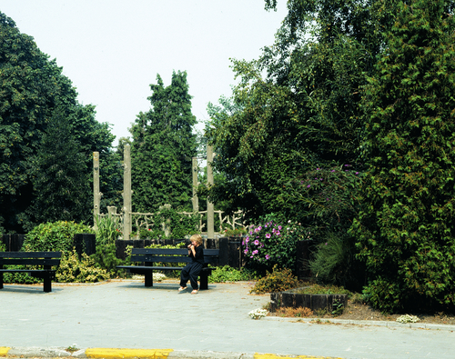 Het stadspark: houten kiosk