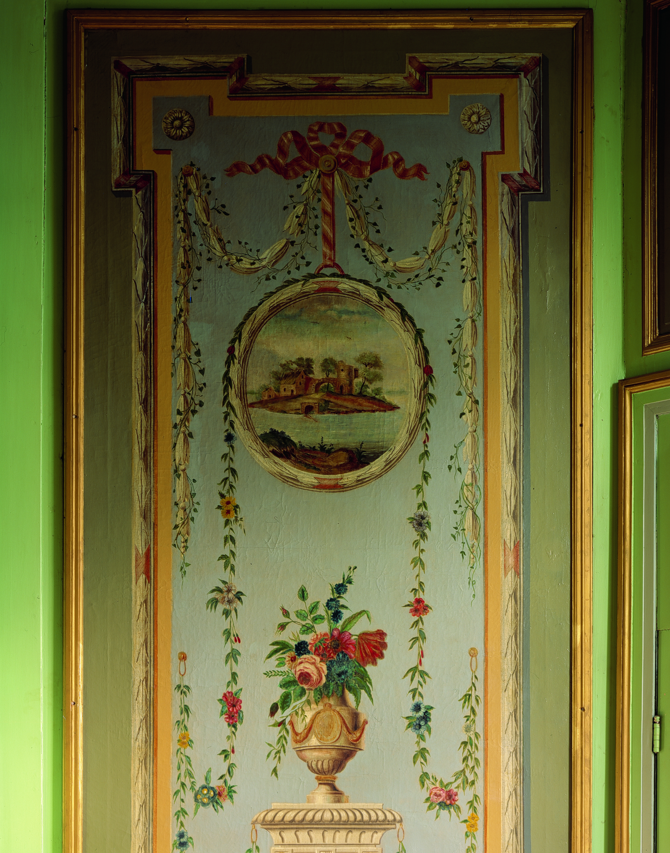 Alle rechten op de afbeelding 'Ruïneschildering in het groene salon van de Parkabdij(detail medaillon) XVIII B. ' gemaakt door Pauwels, Oswald zijn voorbehouden aan Pauwels, Oswald.
