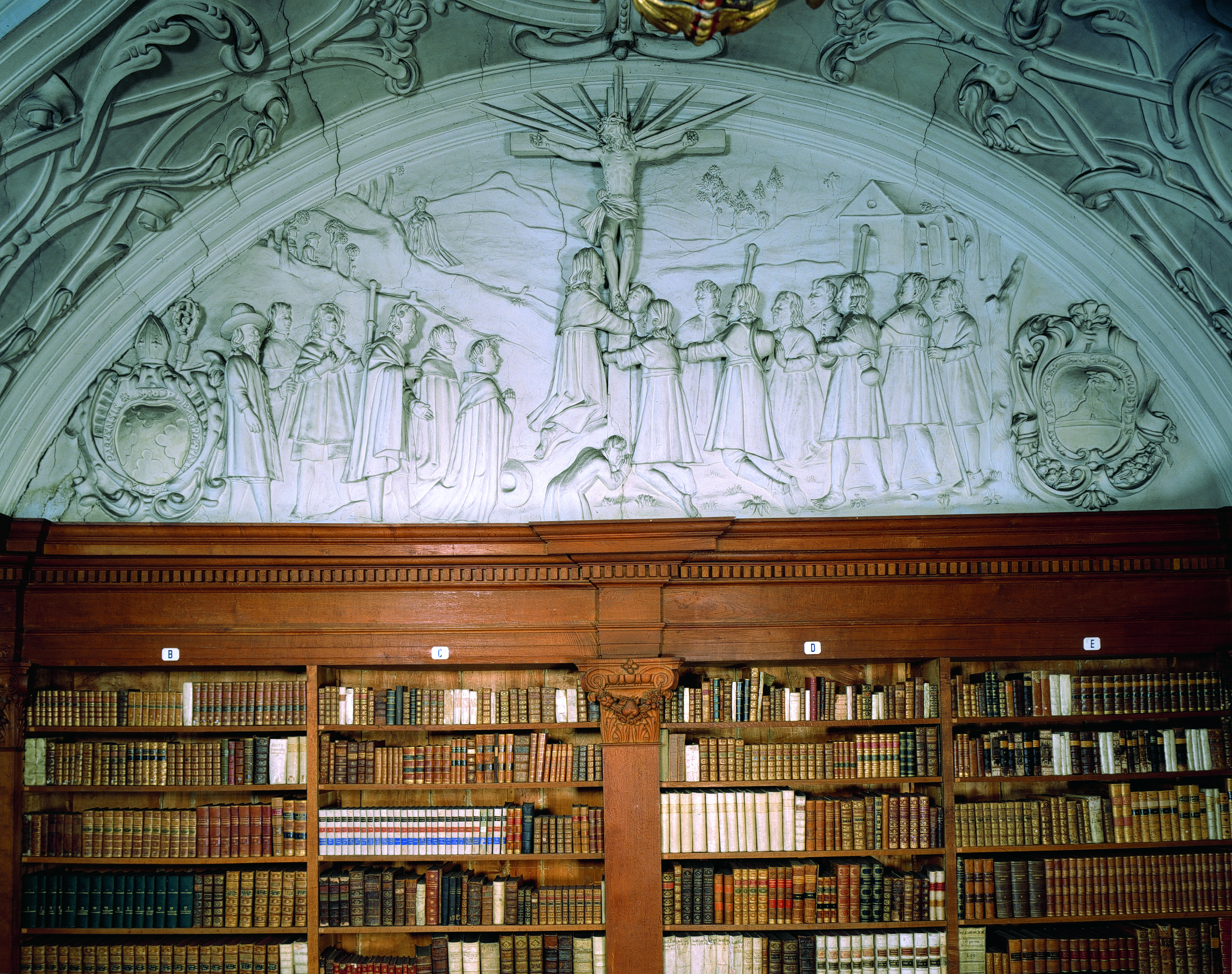 Alle rechten op de afbeelding 'De Abdij van 't Park: bibliotheek met kruisvisioen te Prémontré' gemaakt door Pauwels, Oswald zijn voorbehouden aan Pauwels, Oswald.