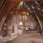 Het vakwerkpand ''Dommershausen'': interieur van de zolderverdieping met dakkap. Label(s): woningen, interieurs