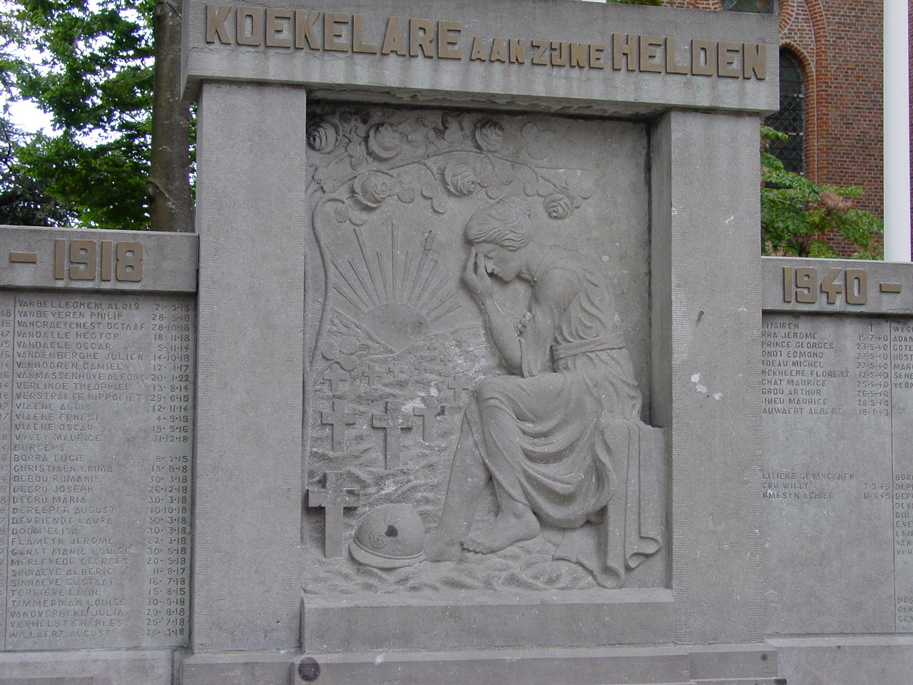 De afbeelding 'Koekelare: Gedenkteken militaire en burgerlijke doden: detail' gemaakt door Decoodt, Hannelore wordt ter beschikking gesteld door Agentschap Onroerend Erfgoed (AOE) onder de volgende voorwaarden: Modellicentie voor gratis hergebruik, Naamsvermelding 4.0 Internationaal.