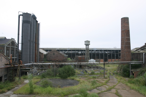Verdwenen cokesfabriek Carcoke te Zeebrugge Gascontainers en schoorsteen 1
